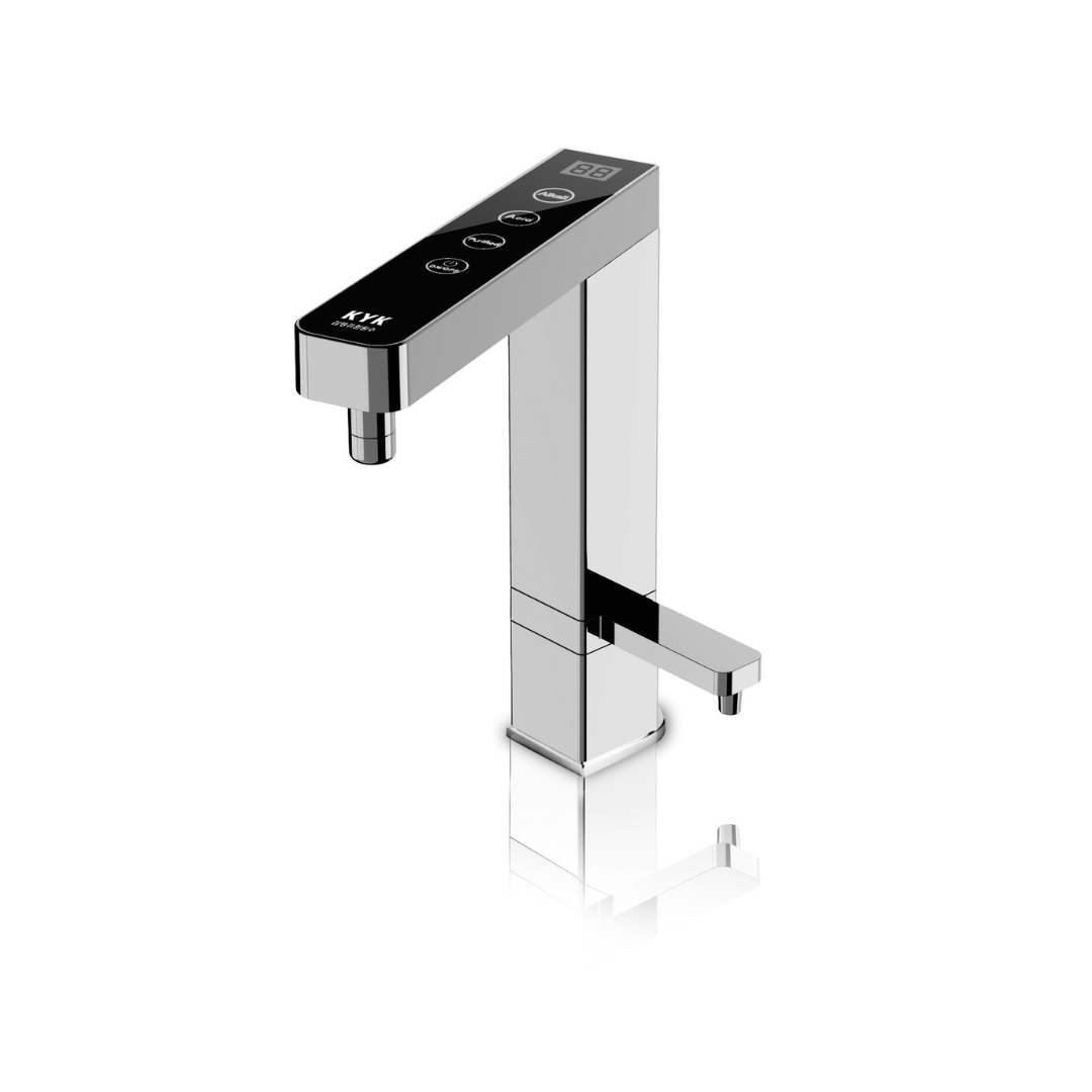 Ionizzatore d'acqua alcalina KYK GENERATION 2 (modello sottolavello) con 7 piastre di titanio rivestite in platino. Ideato per produrre acqua alcalina, acqua acida e acqua purificata. Il dispositivo dispone di regolazione programmabile dei livelli di pH e ORP. Sistema di filtrazione doppio, con sostituzione annuale degli elementi filtranti. È dotato di rubinetto elettronico con comandi diretti per gestire l'intero dispositivo.